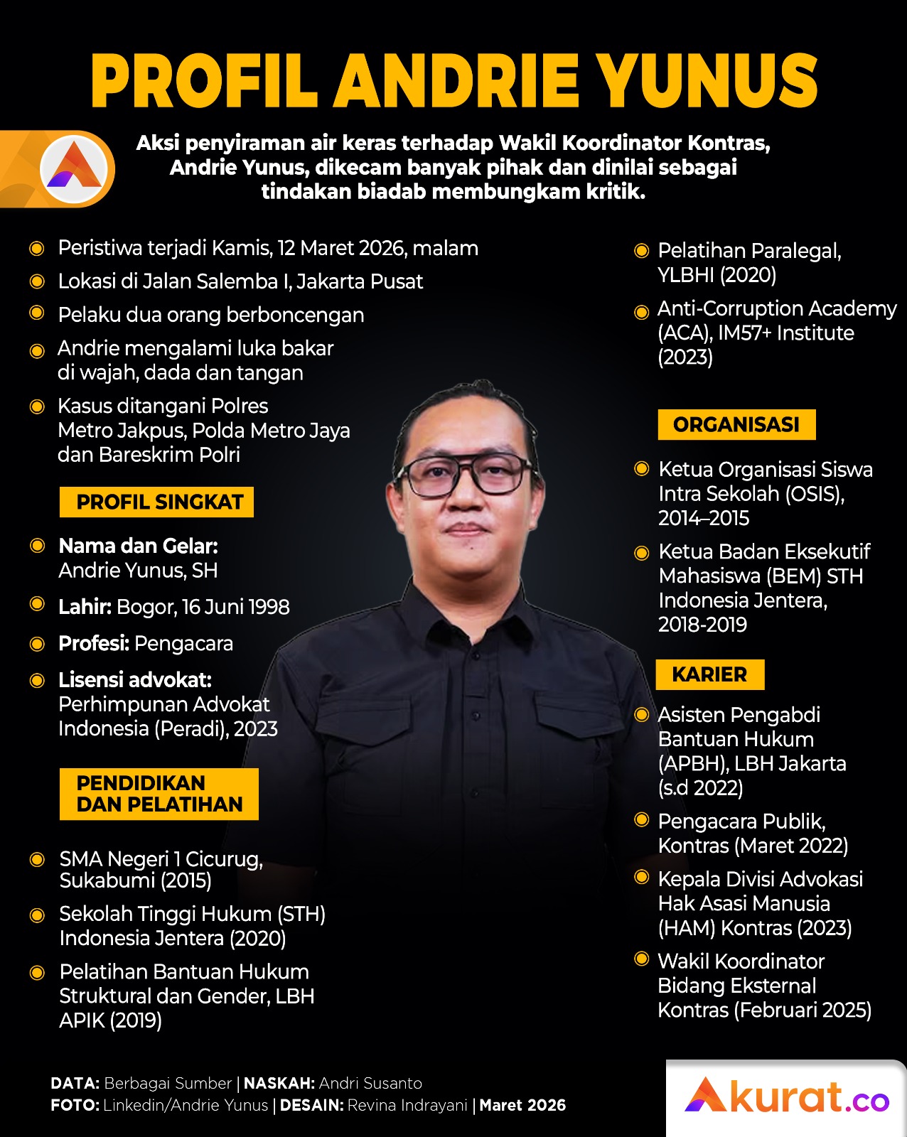 Aksi penyiraman air keras terhadap Wakil Koordinator Kontras, Andrie Yunus, dikecam banyak pihak dan dinilai sebagai tindakan biadab membungkam kritik.