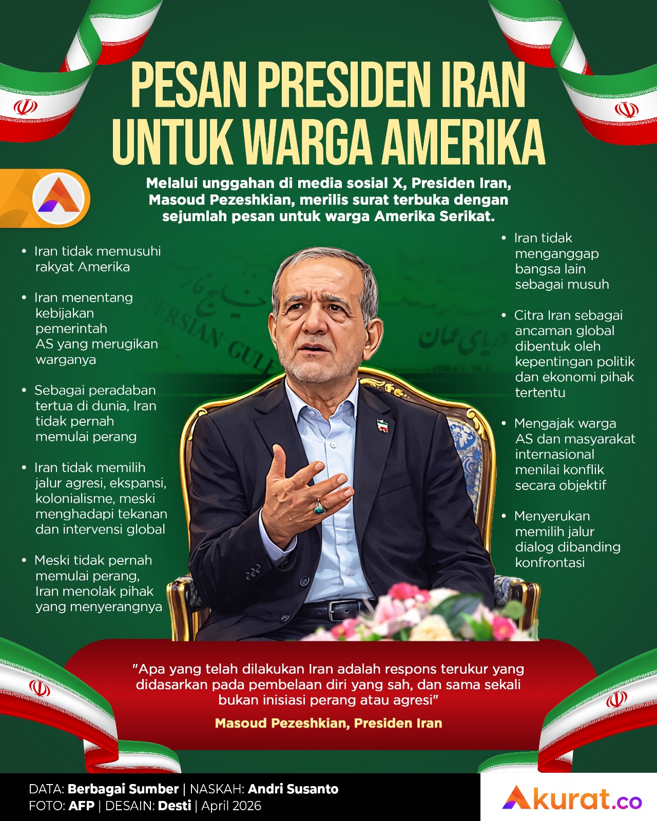 Presiden Iran, Masoud Pezeshkian, menyampaikan surat terbuka dengan sejumlah pesan untuk warga Amerika Serikat.
