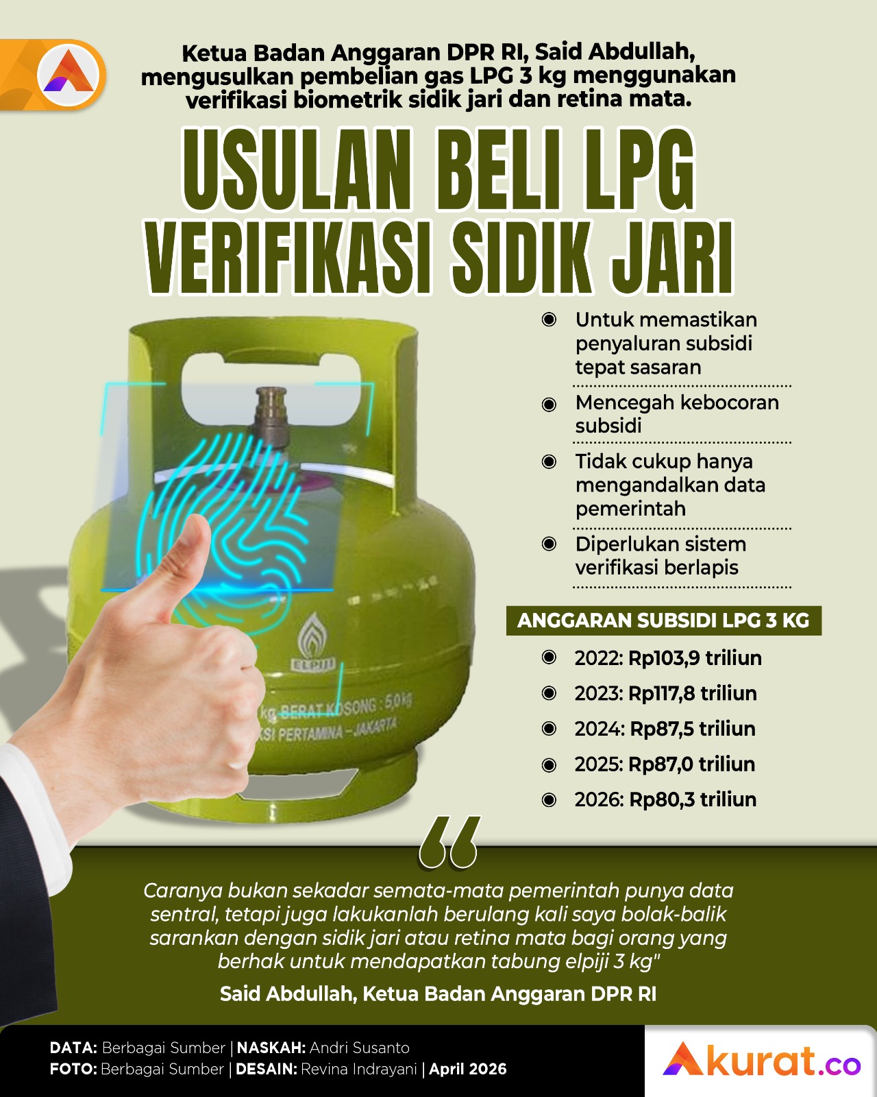Ketua Badan Anggaran DPR, Said Abdullah, mengusulkan pembelian gas LPG 3 kilogram menggunakan verifikasi biometrik sidik jari dan retina mata.