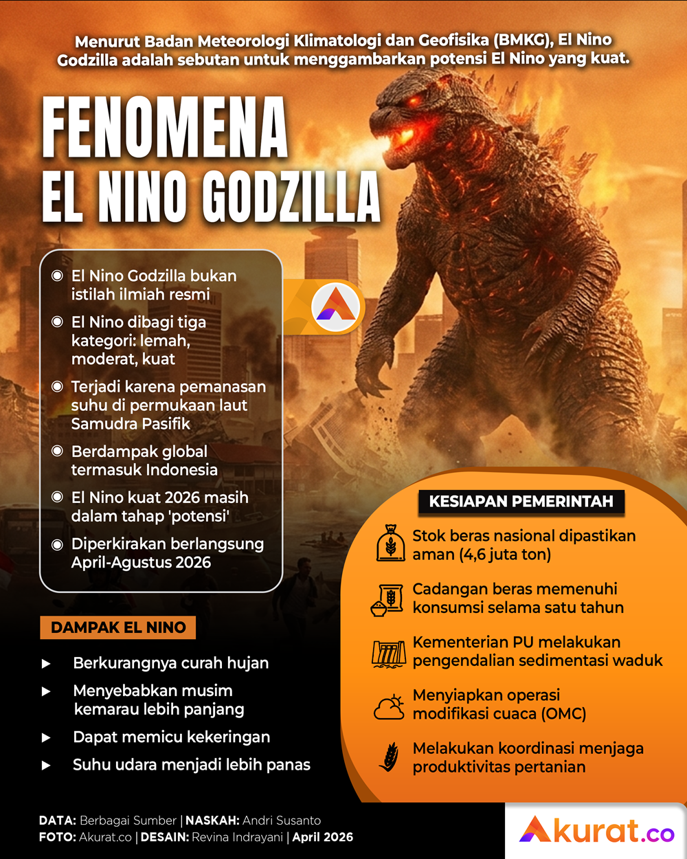 BMKG menyebut fenomena El Nino Godzilla untuk menggambarkan potensi El Nino yang kuat.