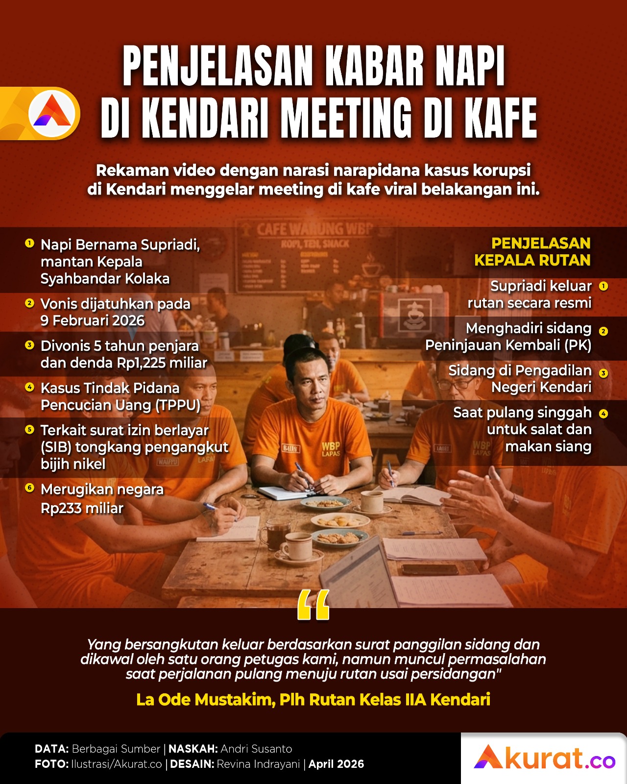 Rekaman video dengan narasi narapidana kasus korupsi di Kendari menggelar meeting di kafe viral belakangan ini.