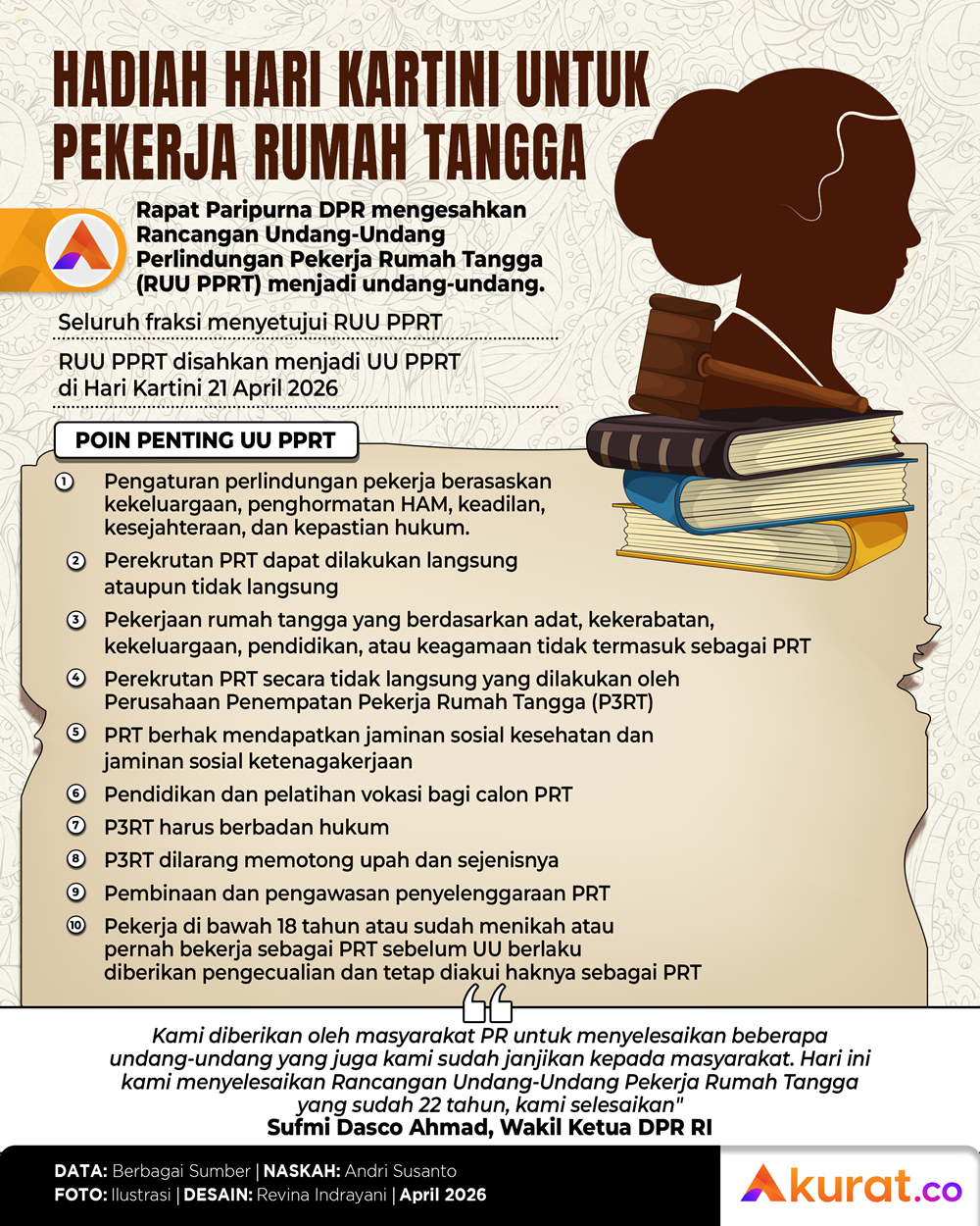 Rapat Paripurna DPR mengesahkan Rancangan Undang-Undang Perlindungan Pekerja Rumah Tangga (RUU PPRT) menjadi undang-undang.