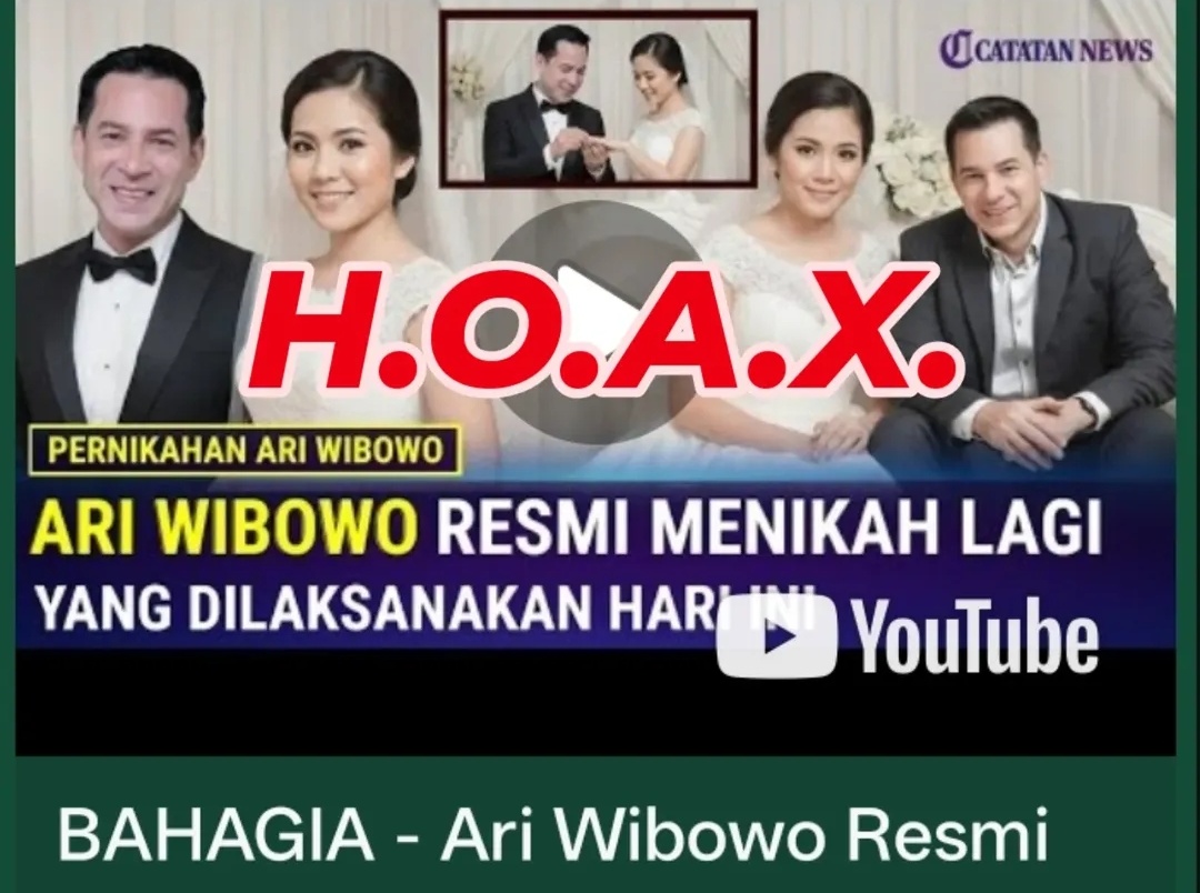 Dia pun segera memberikan klarifikasi melalui akun Instagram pribadinya. Dia mengunggah tangkapan layar berita berjudul 'Bahagia - Ari Wibowo Resmi Menikah Lagi Hari Ini' dan dengan tegas melabelinya sebagai hoaks.